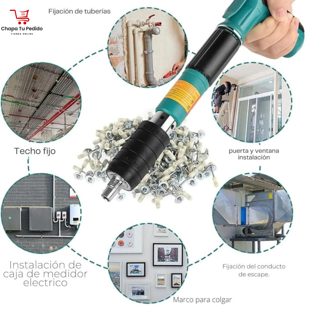 Olvídate de las máquinas estorbosas y los cables por toda la casa. Nuestra Pistola de Clavos Portátil es la remachadora todo terreno, diseñada para que cualquier persona, sin importar su fuerza, logre fijaciones profesionales en concreto, acero y madera de inmediato. Es la solución definitiva para quien valora su tiempo y su esfuerzo.